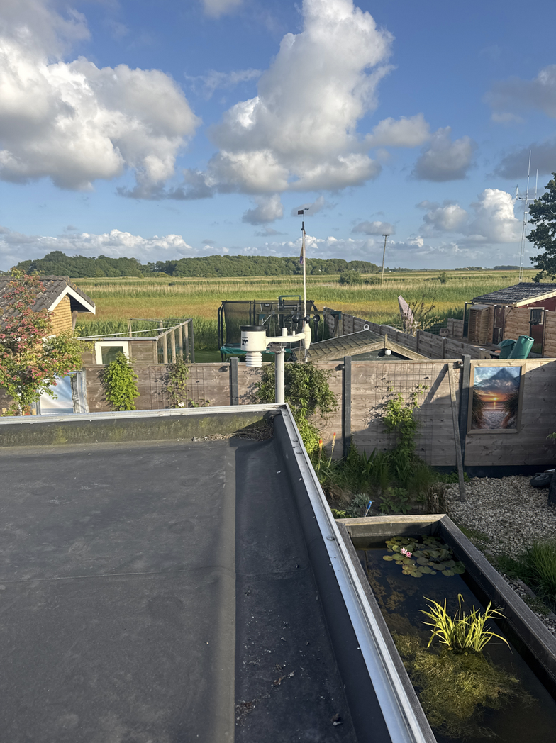 - The photo that would depict the southern horizon is missing. If it were available, it would likely show that the roof reaches a level higher than the station, blocking at least the airflow (if not also sunlight when the sun is low, for example). If the station were placed at the roof’s peak on a mast of at least 1.25 m, the roof would not have a significant impact on wind and temperature measurements.